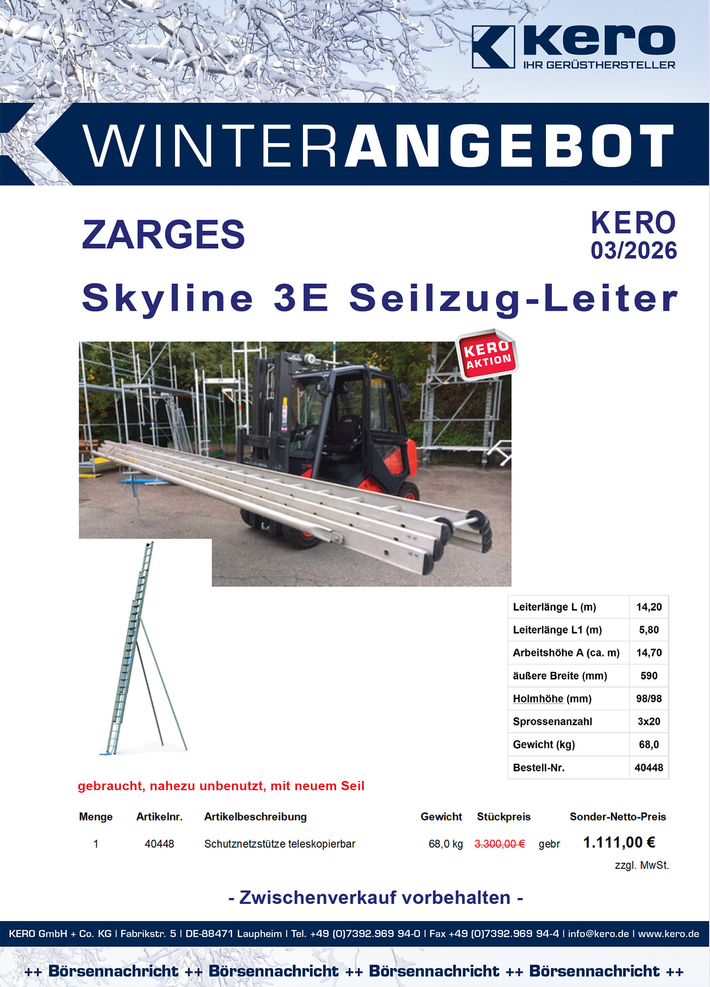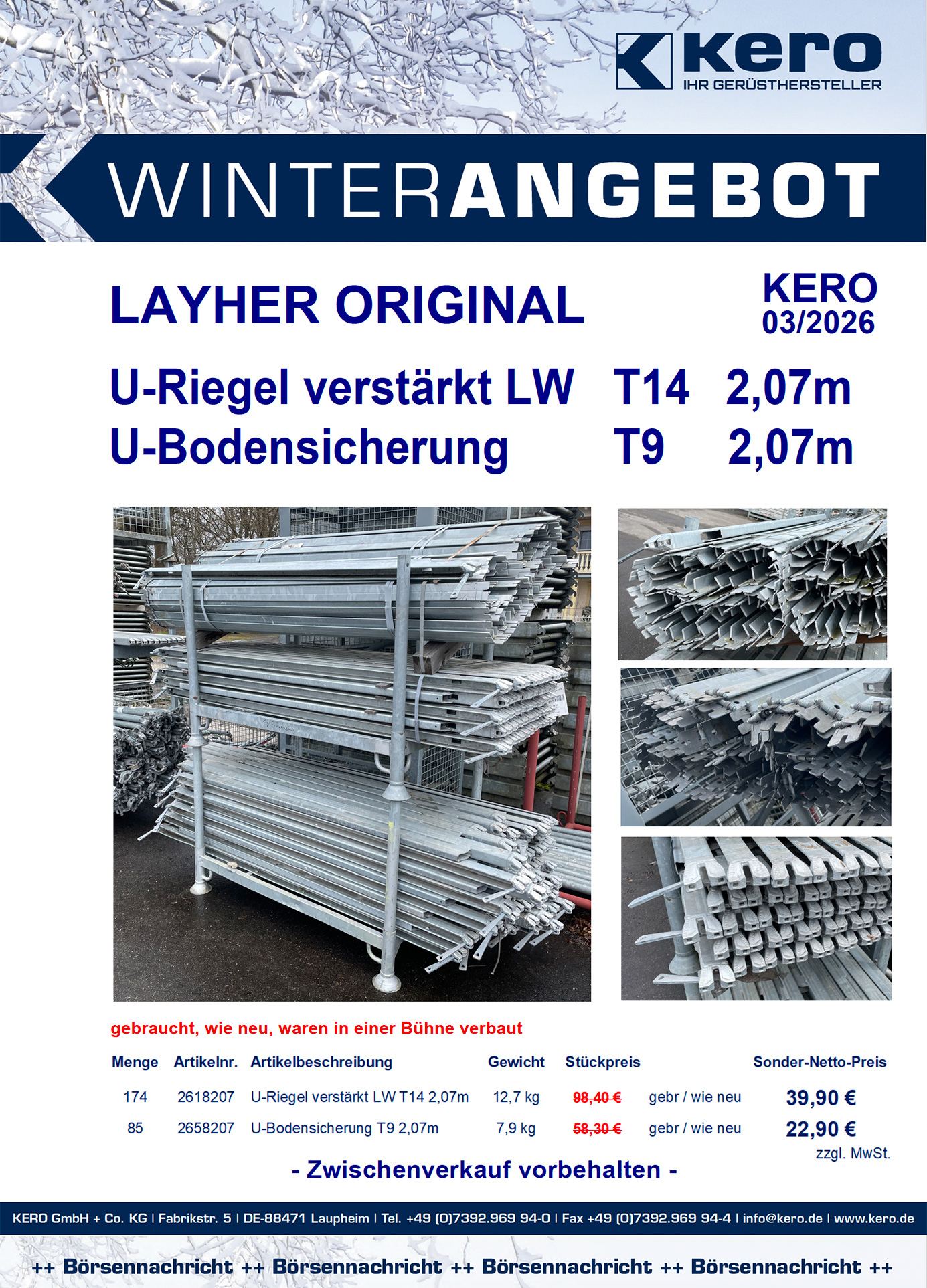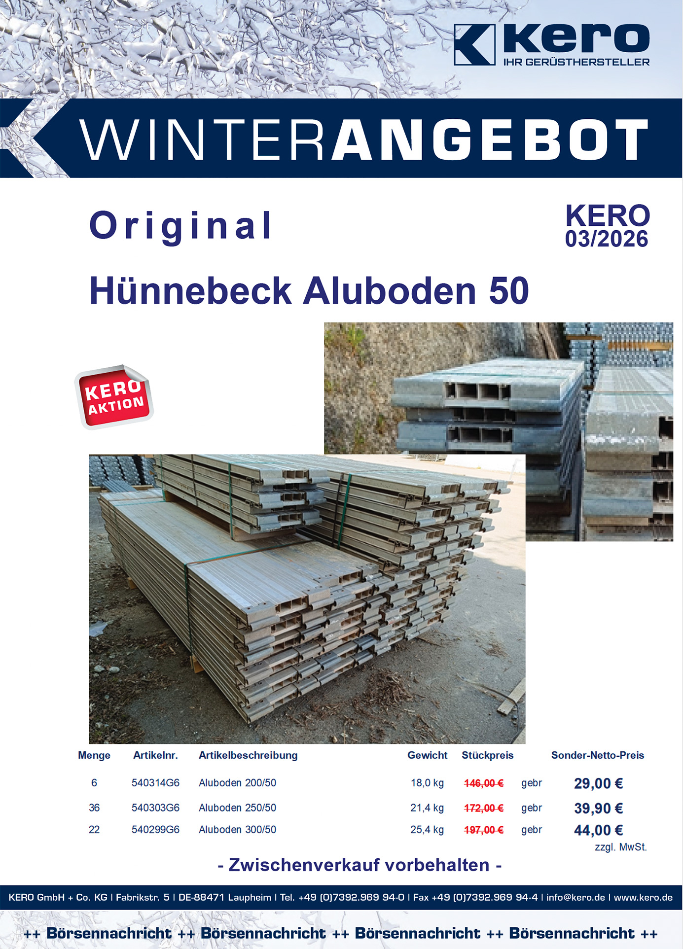 Die INTERNATIONALEN AKTIONS-ANGEBOTE von KERO bieten Ihnen Gebrauchtgerüste, geprüft und versandfertig verpackt.